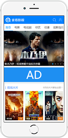 在移动设备访问时在屏幕的顶部或者底部显示通栏广告图加广告